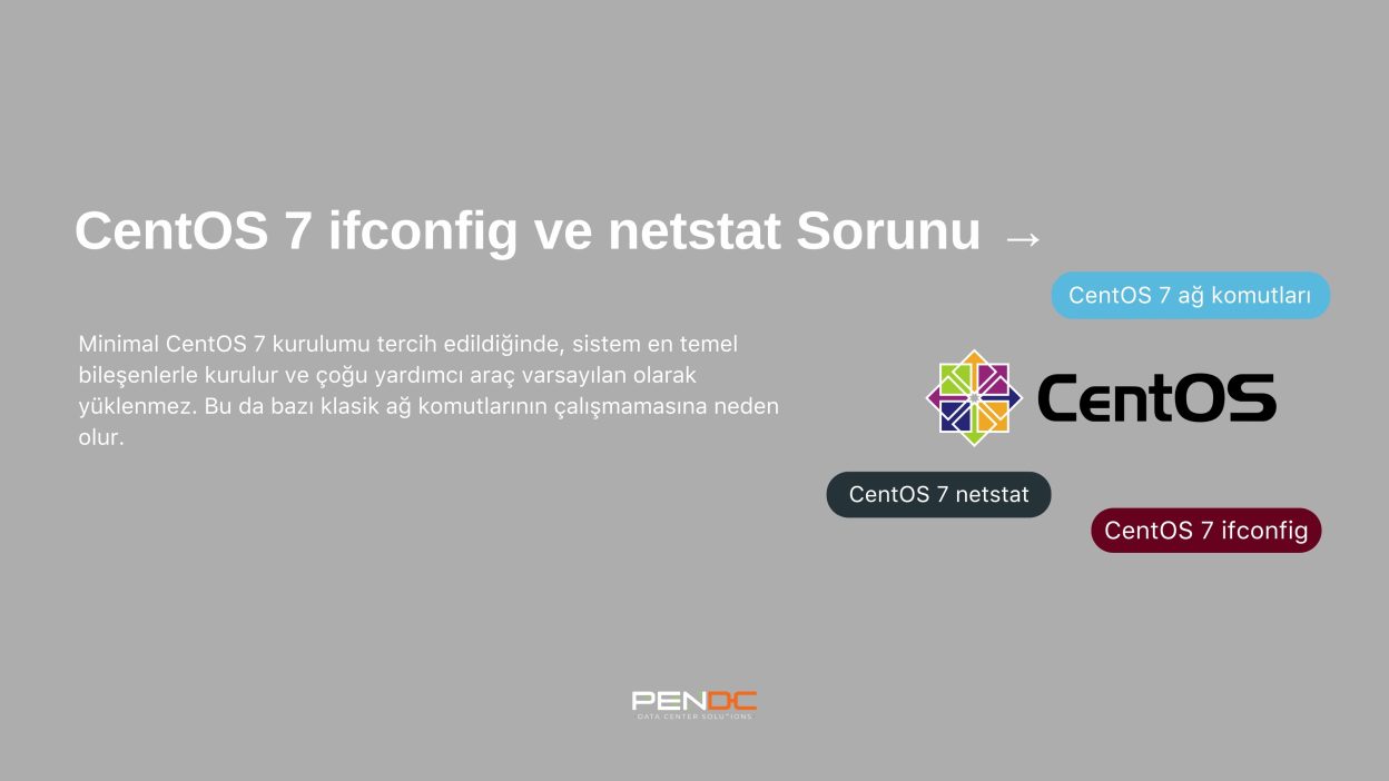ifconfig ve netstat, Linux sistemlerinde ağ arayüzlerini görüntülemek ve bağlantı durumlarını analiz etmek için sıkça kullanılan iki klasik komuttur. Ancak bu komutlar artık birçok Linux dağıtımında varsayılan olarak gelmemektedir. Özellikle CentOS 7’nin minimal kurulumu, bu komutların yer aldığı net-tools paketini içermez. Bu nedenle komutlar çağrıldığında sistem bunları tanıyamaz.