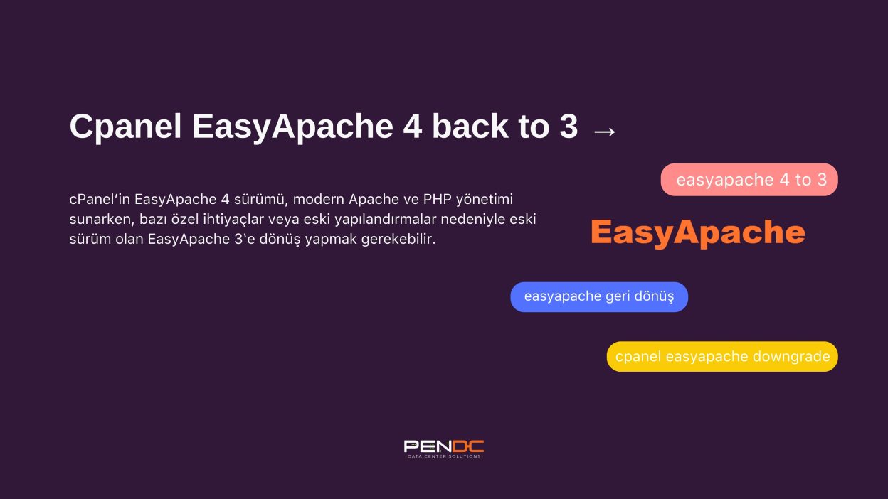 cPanel’in EasyApache 4 sürümü, modern Apache ve PHP yönetimi sunarken, bazı özel ihtiyaçlar veya eski yapılandırmalar nedeniyle eski sürüm olan EasyApache 3‘e dönüş yapmak gerekebilir. Bu işlem önerilmemekle birlikte, bazı senaryolarda geçici çözümler sunmak adına gerekli olabilir.