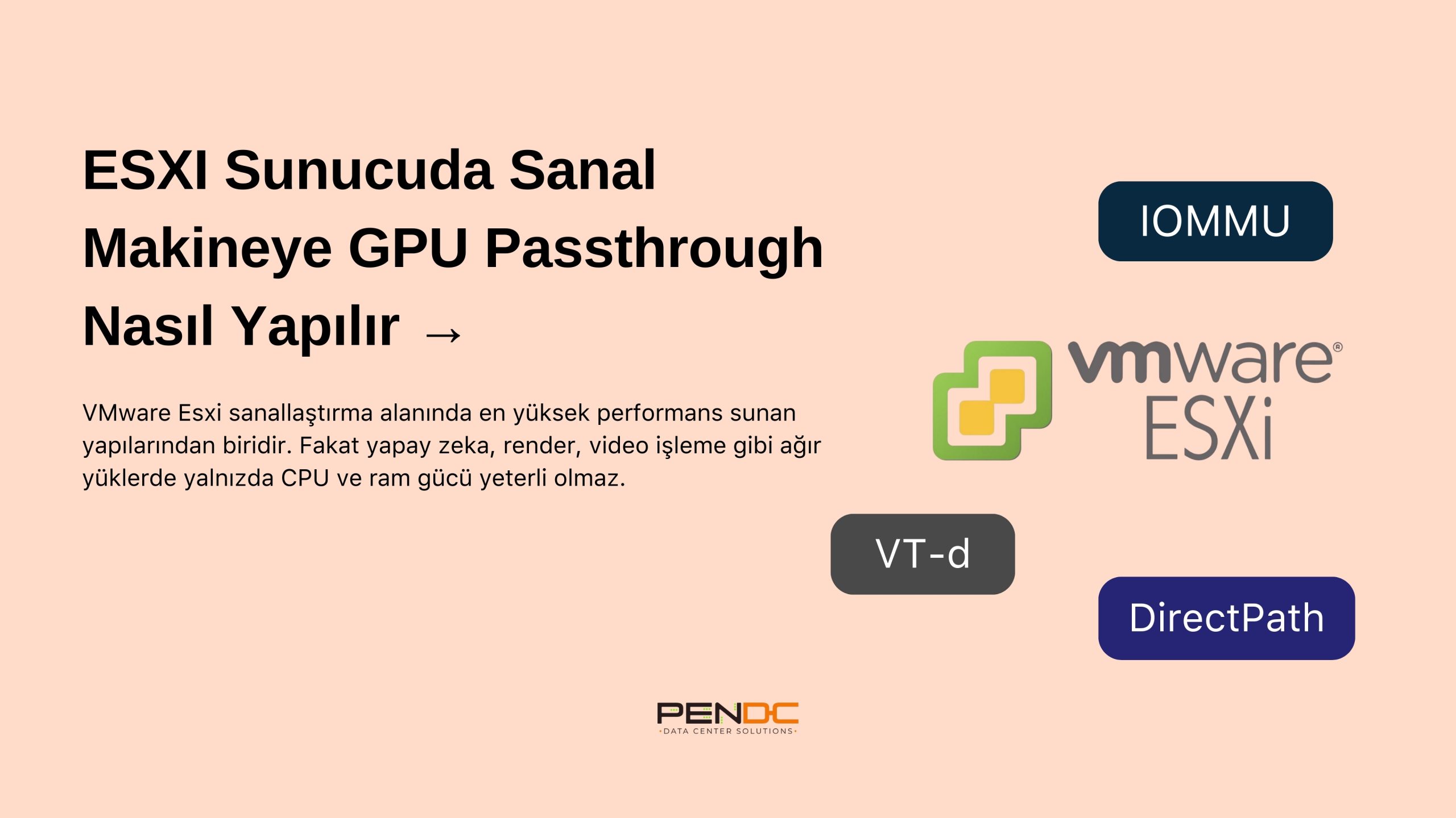 VMware Esxi sanallaştırma alanında en yüksek performans sunan yapılarından biridir. Fakat yapay zeka, render, video işleme gibi ağır yüklerde yalnızda CPU ve ram gücü yeterli olmaz. Bu tür yoğun işlemlerde sanal makinenin GPU’ya doğrudan erişmesi gerekir.