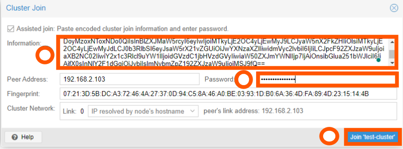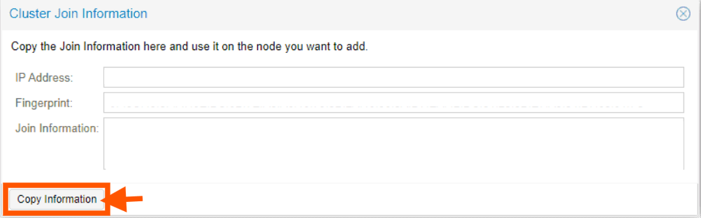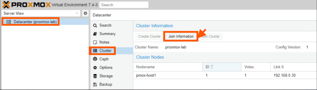 Yeni bir node’u kümeye eklemek için önce ilk node’daki Join Information bilgisini almamız gerekiyor. Datacenter → Cluster bölümüne girip Join Information butonunu açalım ve çıkan metni panoya kopyalayalım.